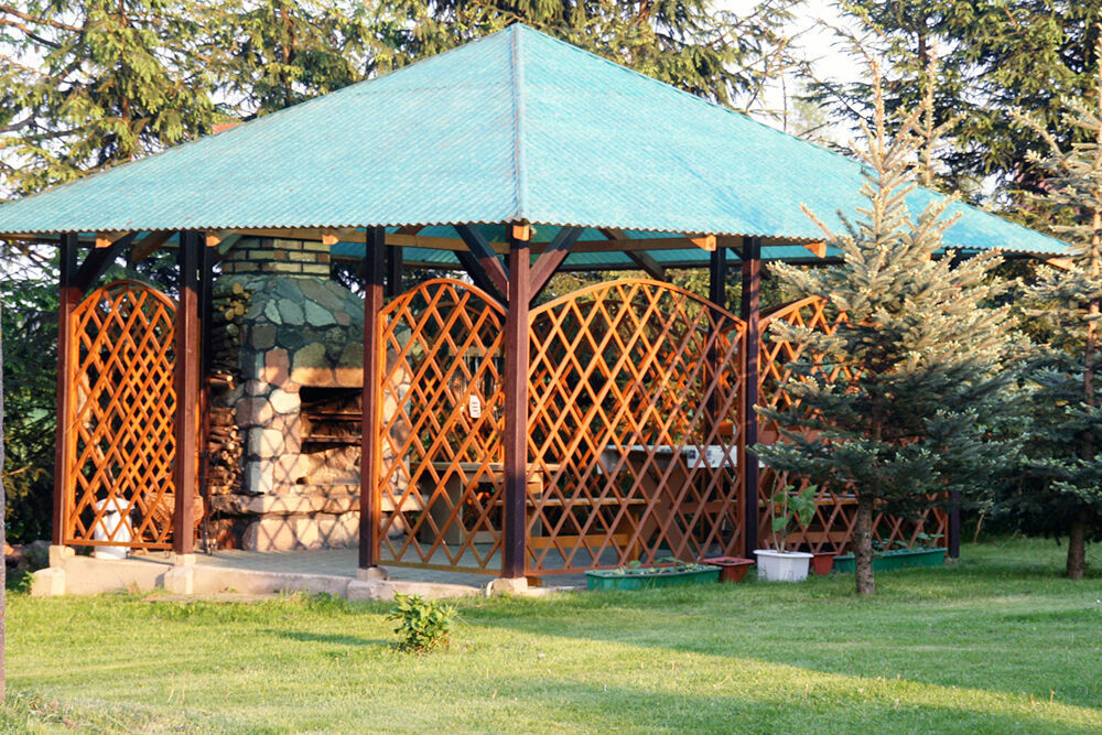 · Relaks na lądzie: Altana z kominkiem ogrodowym, wędzarnia, miejsce na ognisko, stawy rybne dla wędkarzy oraz boiska do gier.